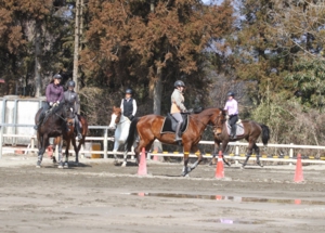 部内試合の前後には、コース回りの練習も可能。毎回少しずつ違うコースを、乗り馴れた馬、乗り馴れた場所で思い切り練習出来ます。